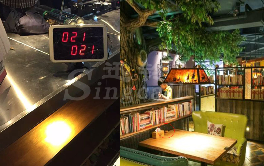木色的APE560漢堡呼叫器配合原木色的裝修風(fēng)格,精致優(yōu)雅而又落落大方??腿擞行枰獣r(shí),只要按下桌邊的呼叫器,放于前臺(tái)的APE1200就可以同步接收到呼叫信息,并顯示呼叫桌號(hào),以音樂或者語音報(bào)號(hào)的方式給予提醒,服務(wù)人員通過提示及時(shí)前去提供相應(yīng)服務(wù)。迅鈴無線呼叫系統(tǒng)的應(yīng)用,增加了服務(wù)效率,節(jié)省了人力成本,使得整個(gè)服務(wù)過程有條不紊,讓客人更加享受整個(gè)用餐過程。